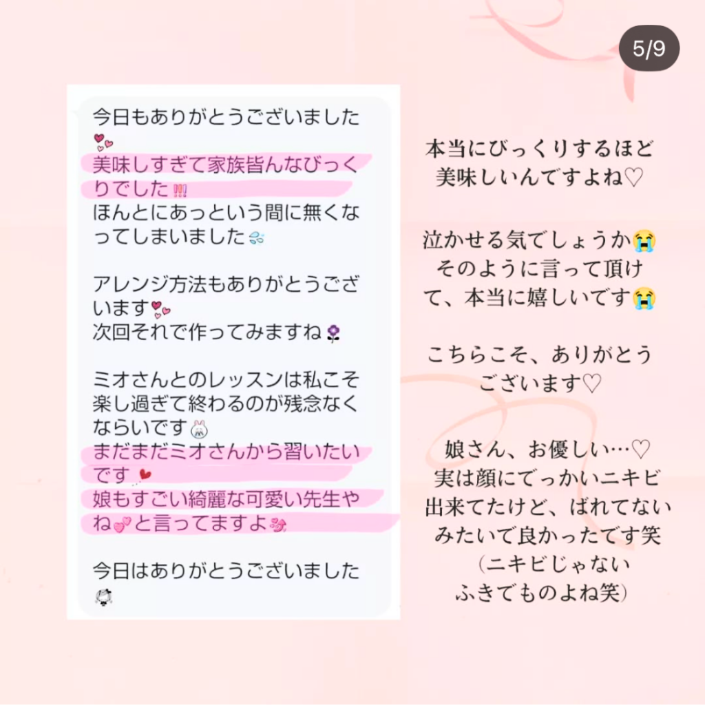 - お渡しするコンテンツの全ては、無断転載・譲渡・商用利用・レシピを少し変更してレッスンするなどはお止めください